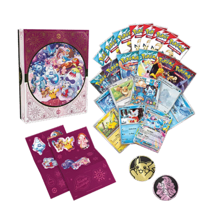 As Champion of the Sinnoh region, Cynthia is one of the strongest Pokémon Trainers in the world, and her Garchomp has been by her side since the very beginning! Discover the power of their friendship in this collection with a foil promo card featuring Cynthia’s Garchomp ex, which has attacks that do big damage and help you draw cards. You also get foil cards of Cynthia’s Gible and Cynthia’s Gabite, a cool sticker and standees for display, and more Pokémon inside booster packs.